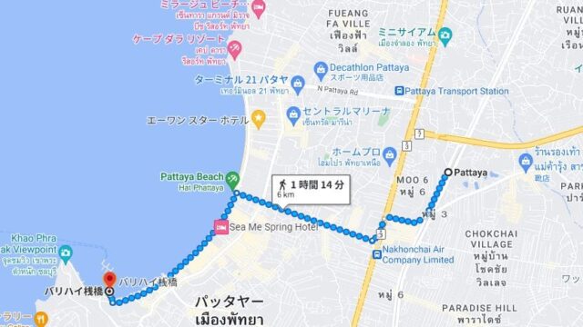 バンコクからパタヤ駅までの列車の料金が30バーツって事を考えるとたった6kmの移動で50バーツは結構高いよな。