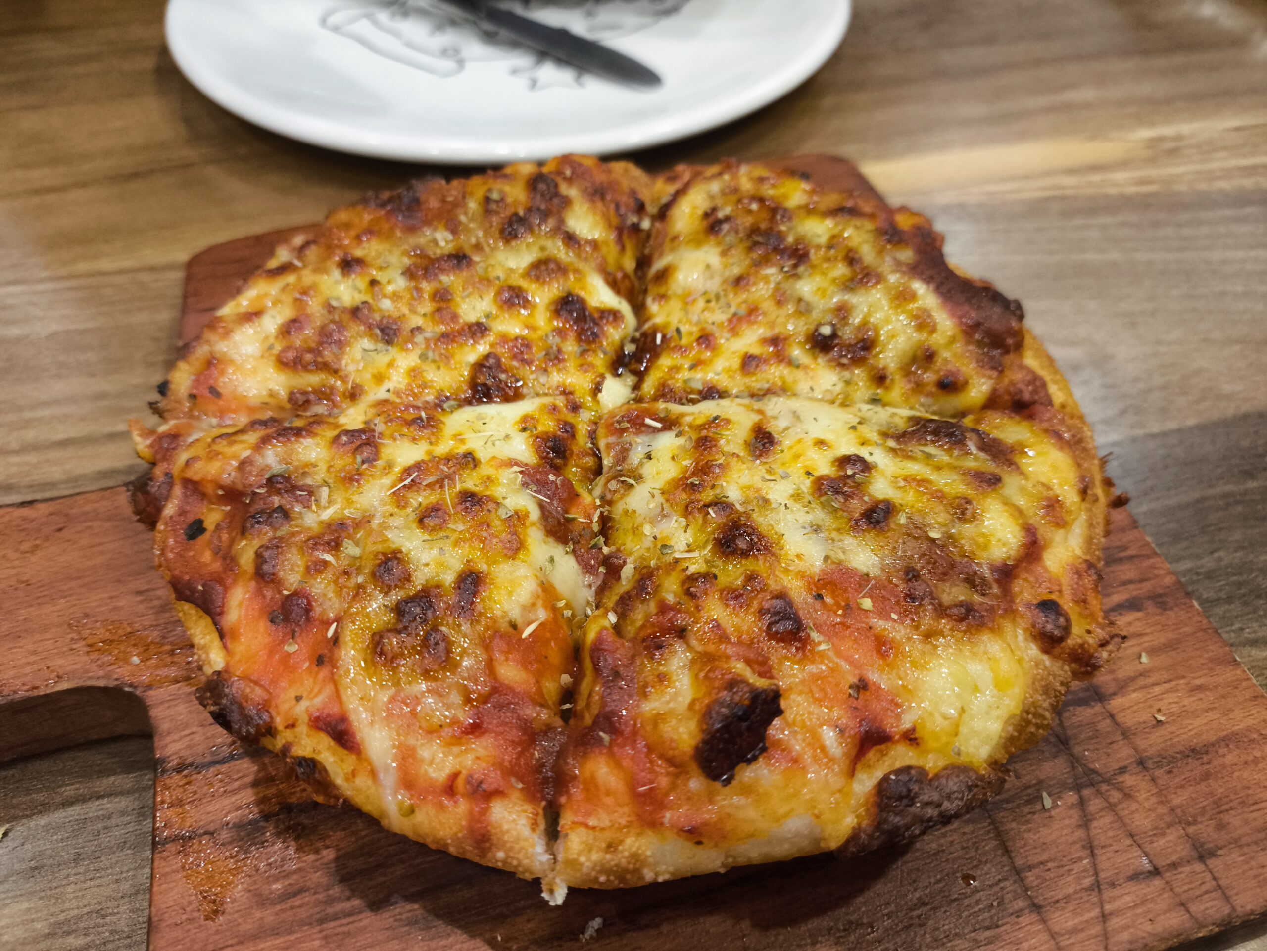 パン生地のピザはあまり期待していなかったけど、フニャフニャのパン生地ではなくサクッと食感で美味しかった、2人で食べるのにちょうどよいサイズだね。