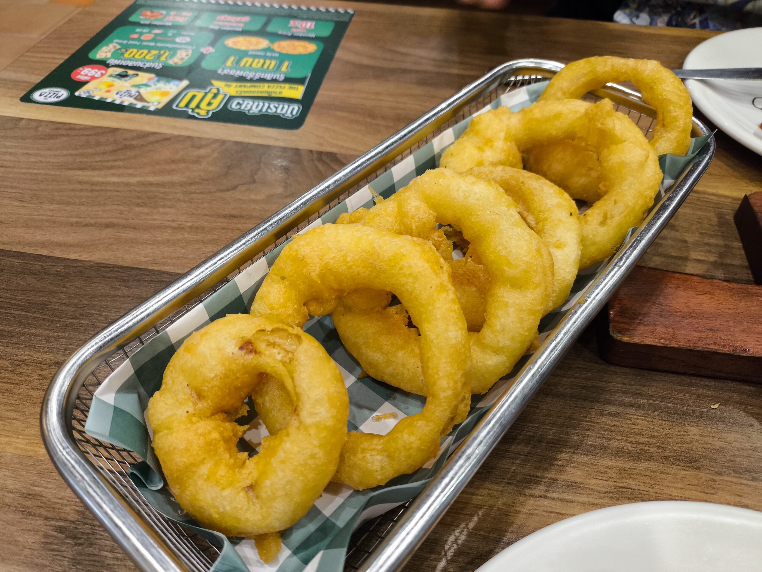オニオンリングは衣が激厚でめっちゃ脂っこい。。。俺氏は3個食べで胸焼けして食欲ダウンです。
