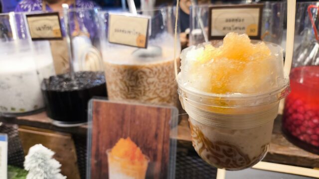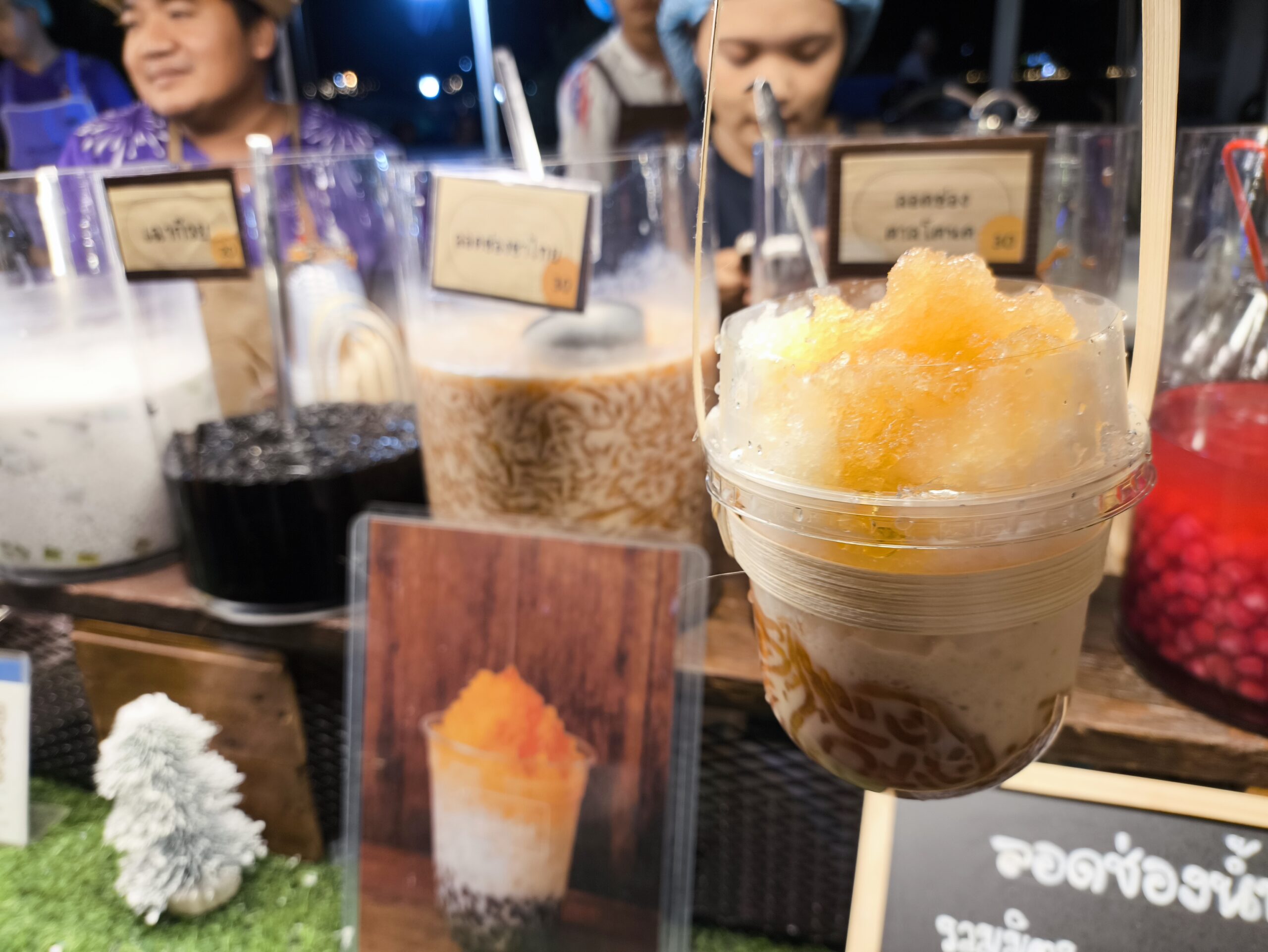 とりあえず冷たい飲み物って事でタイティー味のロッチョン30バーツ(約150円)があったので購入。