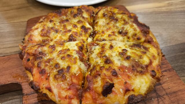 日本ってピザが高いと思うけど、タイもそれなりに高くて、普通のⅯサイズ1枚でほぼ400バーツ(約2000円)超えちゃうねぇ。