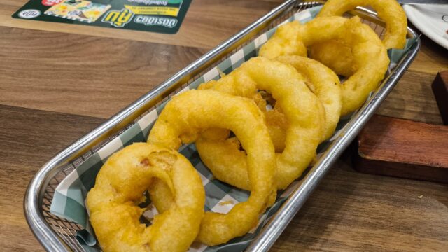 オニオンリングは衣が激厚でめっちゃ脂っこい。。。俺氏は3個食べで胸焼けして食欲ダウンです。