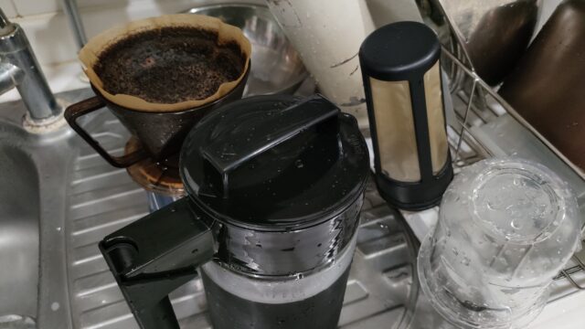 最後だけ気を付けて注げば問題無いけど、注意力散漫な俺氏は絶対に忘れるのでコーヒーの抽出は別の容器で作り、ペーパーフィルターで濾したアイスコーヒーを入れるサーバーとして活用してます。