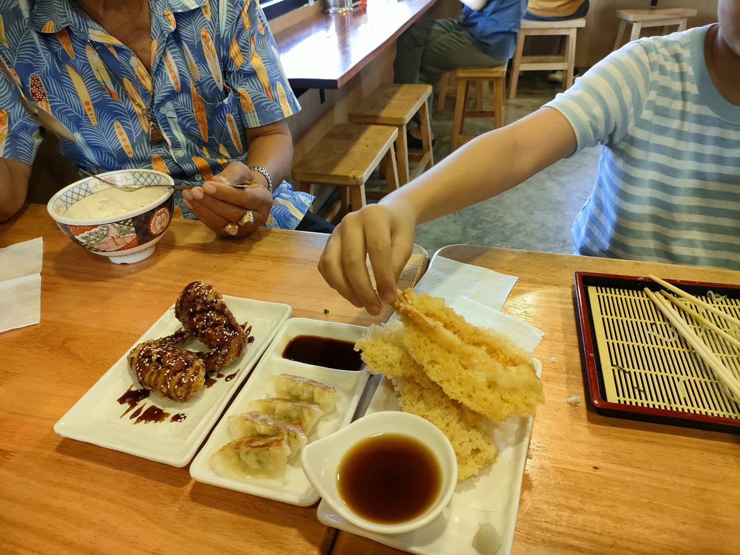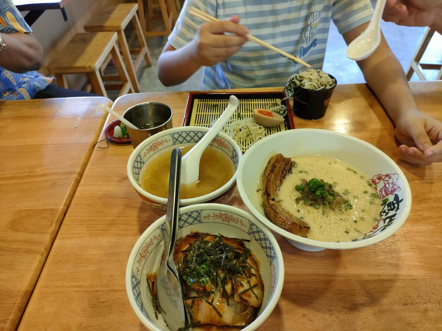 一緒に行ってないのでメニューの詳細は不明、多分チャーシュー丼、豚骨ラーメン、ざるラーメン、カレーライス、餃子、名古屋手羽先、海老天かな。