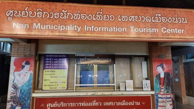 旅行計画中に嫁氏がナーン市内の観光名所を巡る「観光バス」の情報を見つけてくれたので朝9時半出発のバスを目指してホテルから移動です。