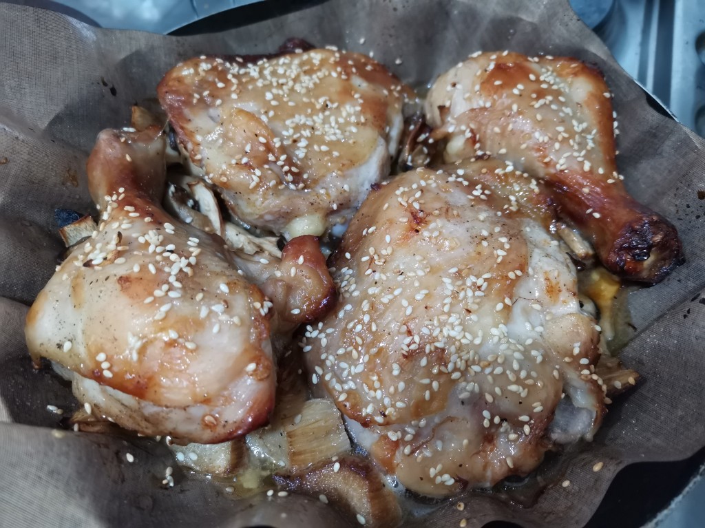 で、煎りごまが出来たので、食パンとか鶏もも肉のオーブン焼きに使ってみる。