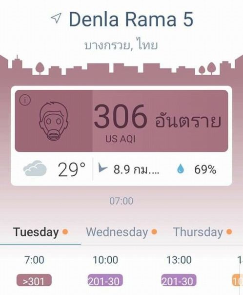 バンコクではアメリアAQI306(極めて健康に良くない)で街の景色が白いらしい。