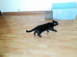 今回は嫁氏が注射担当との事で、点滴チューブに入った気泡を抜いていると、危険(点滴)を察知したココロは小走りで避難を開始。