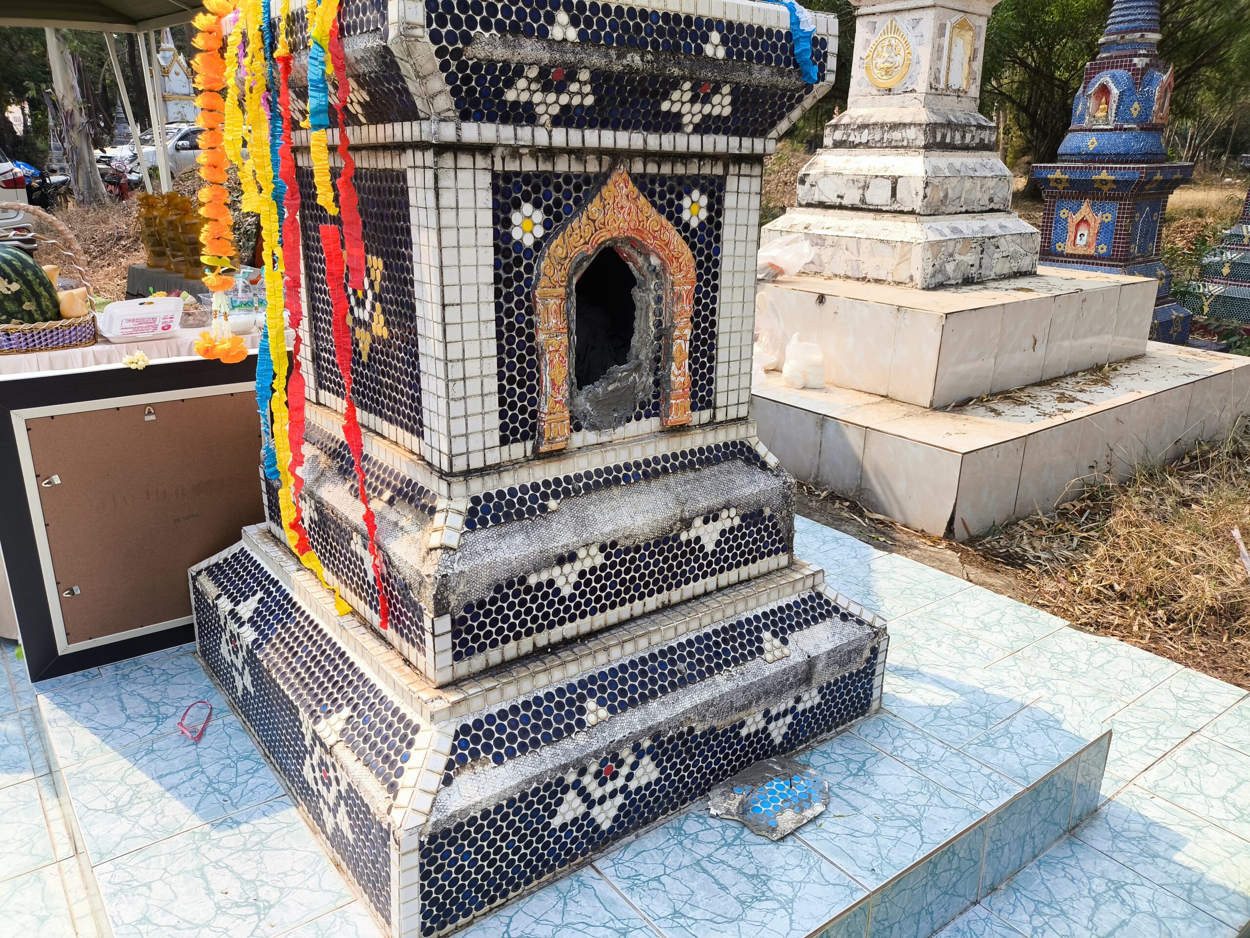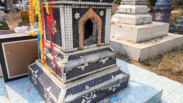 タンブンが終われば、お墓の裏に納骨室?の穴に義母の遺灰を突っ込みます。