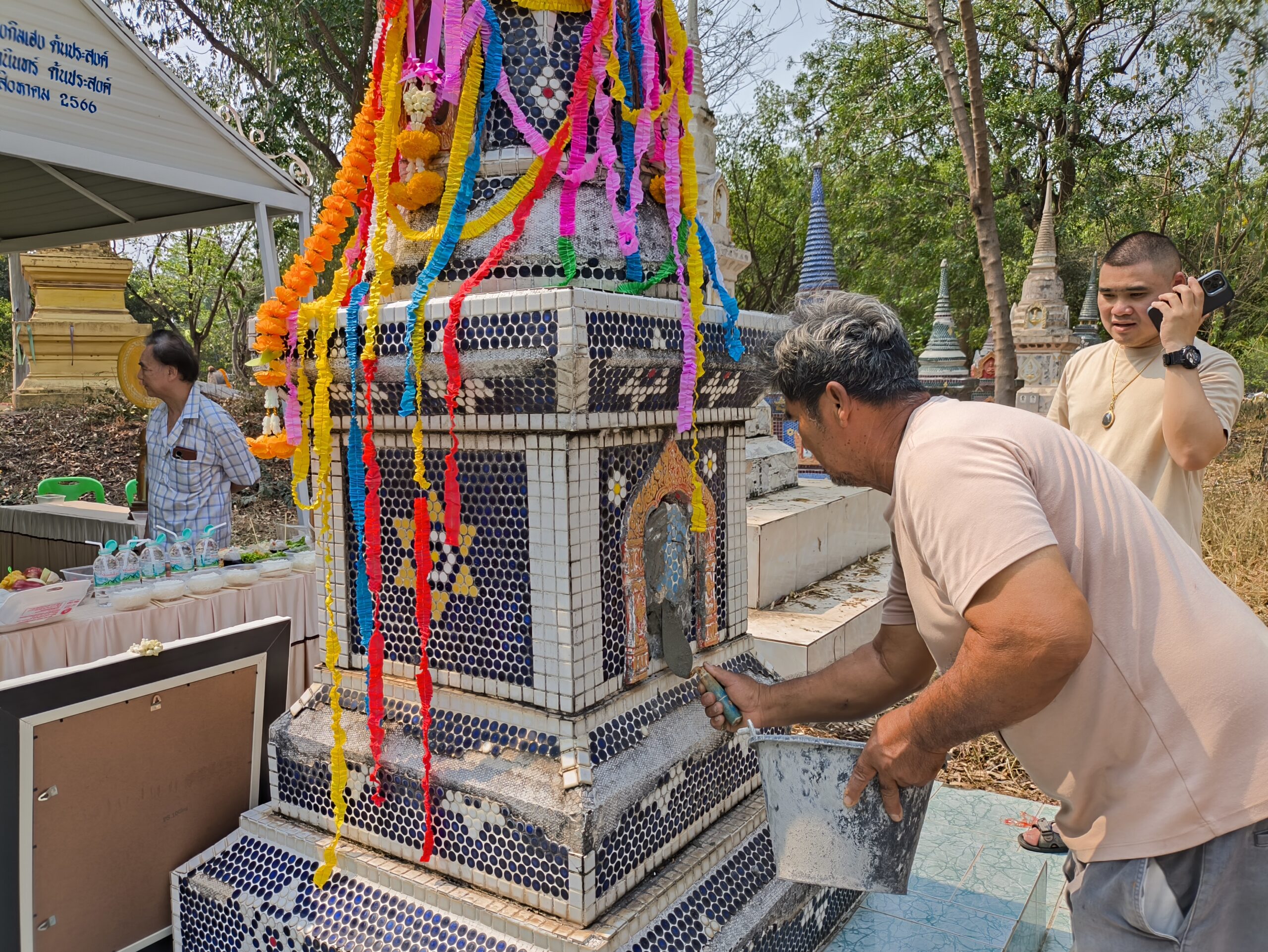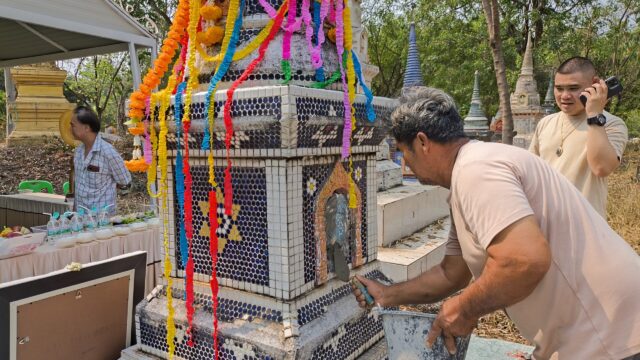 当初は遺骨の半分はタイ式の川に流すプランだったが、全ての遺骨を納骨する事にしたらしい。