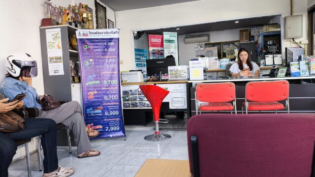 バイクの税金は100バーツなので並んでいる間にお財布から100バーツを準備し、自分の番になったらバイクの車検証と強制保険の書類を窓口に提出し100バーツ支払い、今年分のステッカーを貰って納税おわり。