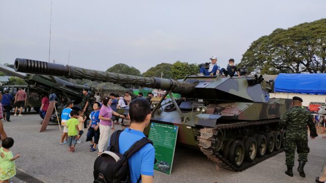 今回は曇り空で、暑くなくて快適でした。外国人だとタイの軍事基地に入る機会は子供の日のイベントくらいしかないので良い経験になりますね。