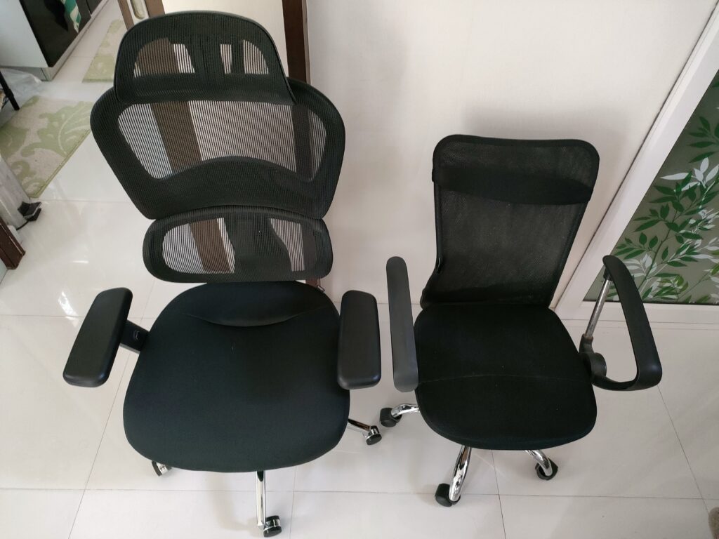 そんな椅子も経年劣化でキャスターや背もたれ部分が壊れて不快になって来たので自分のお小遣いを投入して良いオフィスチェアを購入するのです。