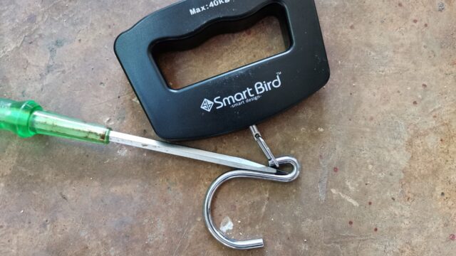 新旧で構造は同じなので、壊れたスケールからフックだけ取り外します。