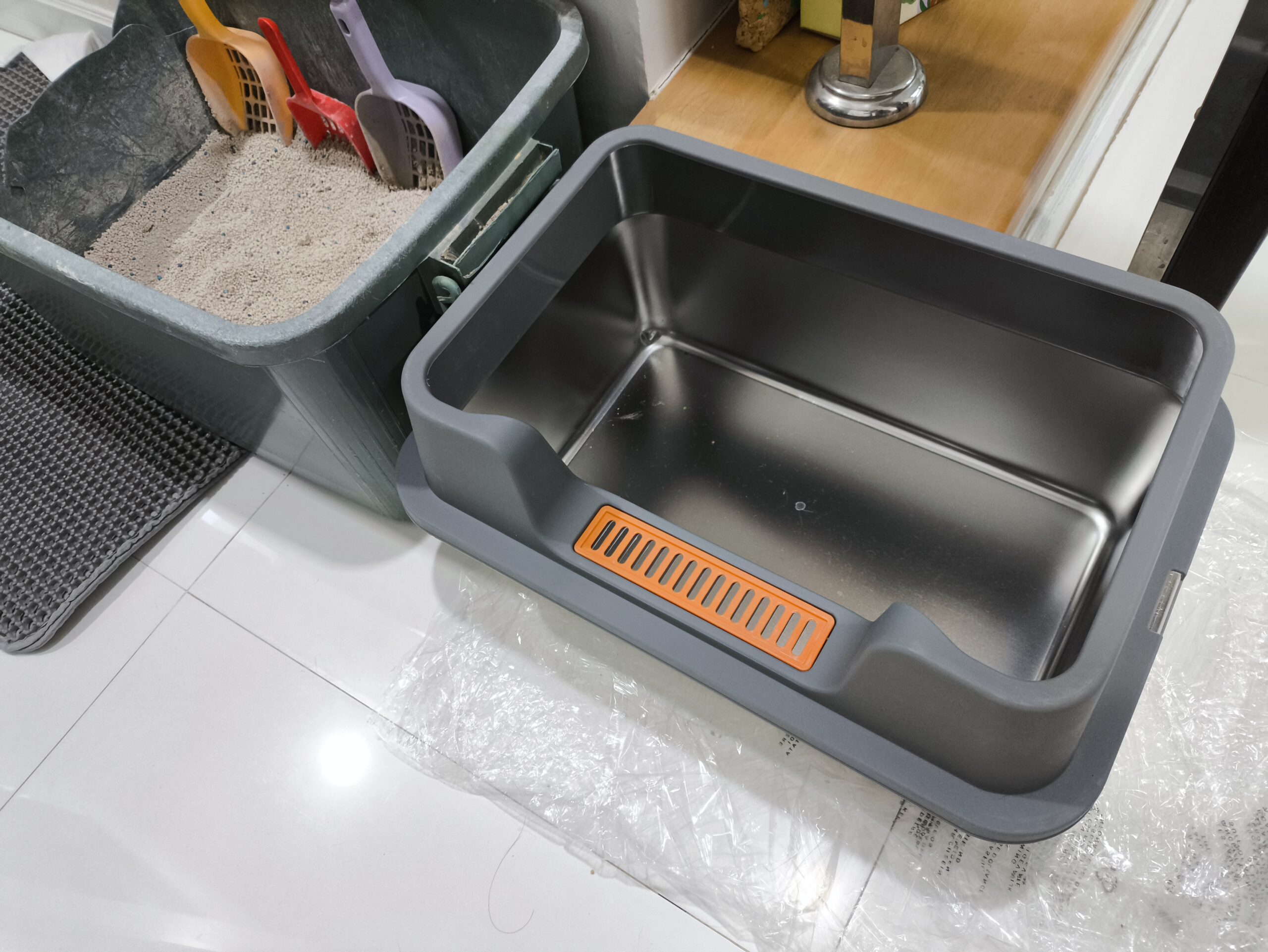 家に覆いがあるタイプもありますが、今までの猫トイレと同じ使い勝手の方がプルさんも安心して使えるかと思い、開放感のあるタイプにしました。