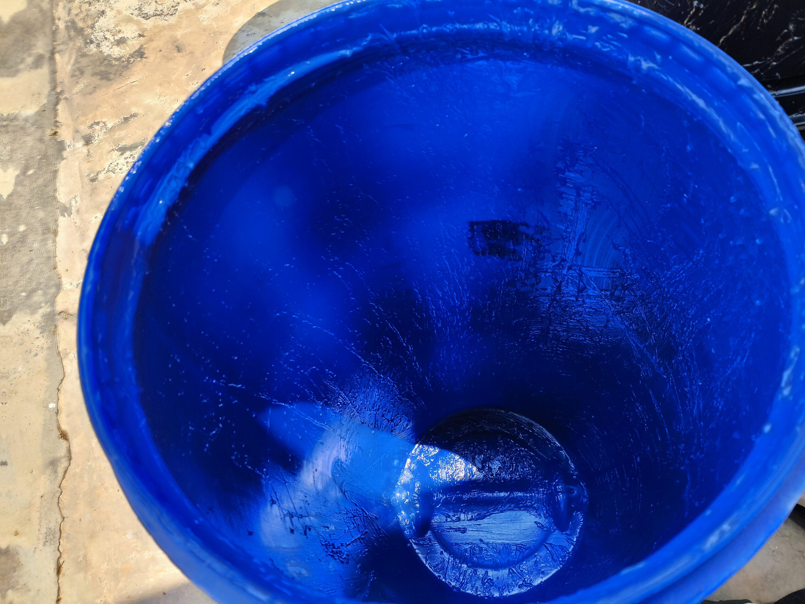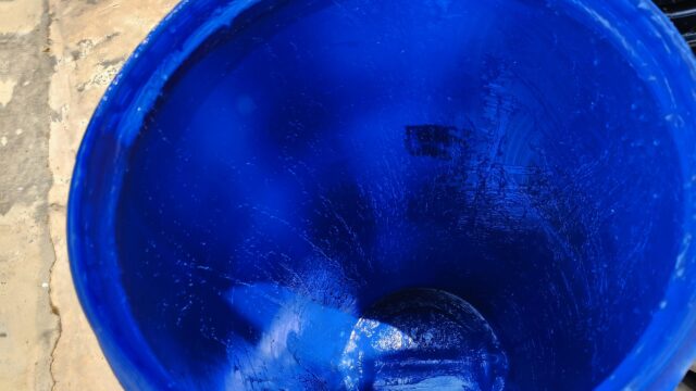 とりあえず中のジェル状洗剤を洗い流せば水タンクとして使えるので、柄の長いデッキブラシと水で洗剤を洗い流しました。