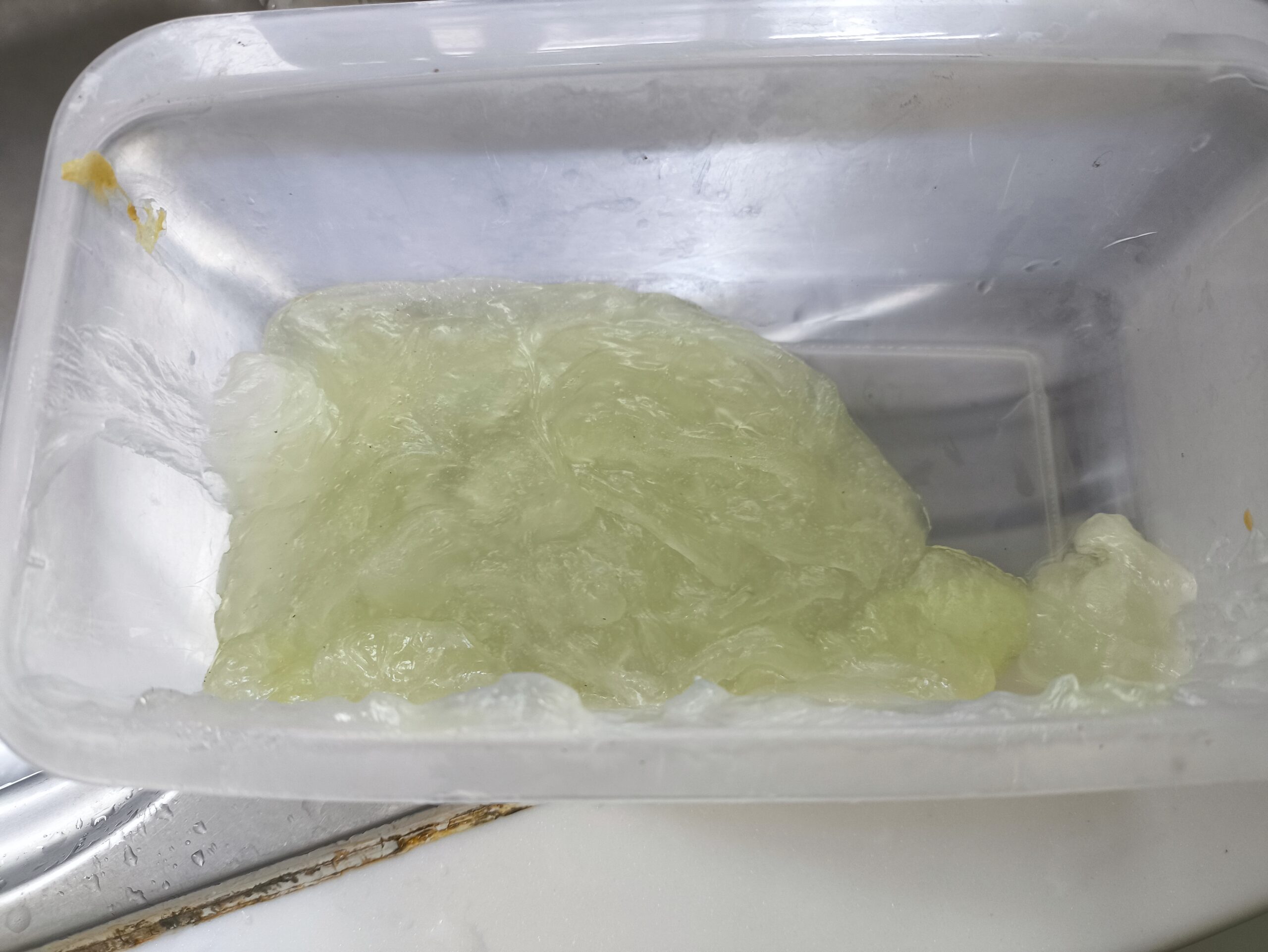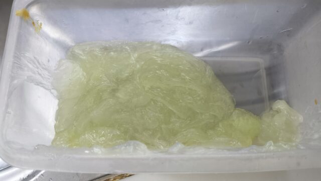 そして商品が到着し中を開けてみると、中にドロッとしたジェル状の液体がついた商品が届く。