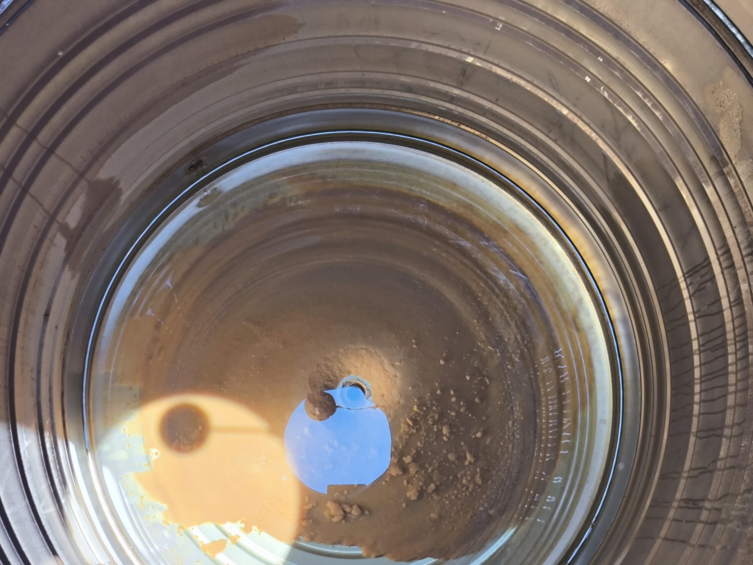 前回給水車の水が川の水?レベルで汚れていてミョウバン使って水をきれいした結果、水タンクの下には結構な泥が堆積してました。