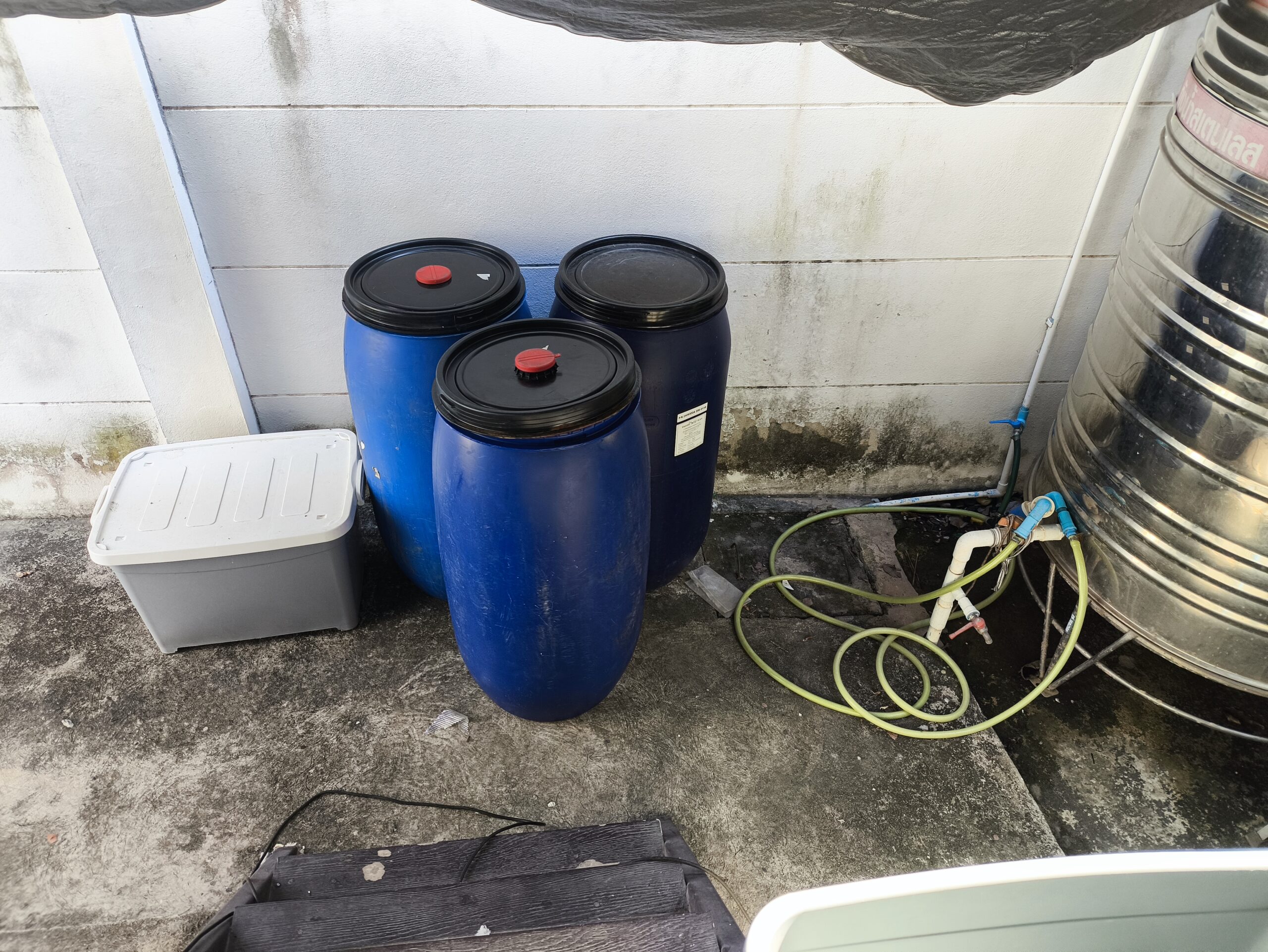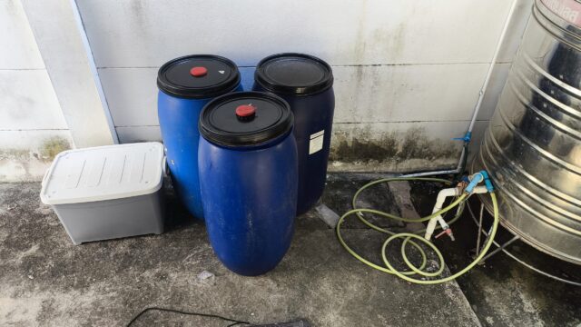 そんな感じで、新に水タンク150L×2個で我が家の貯水パワーは2500Lくらいに増強。