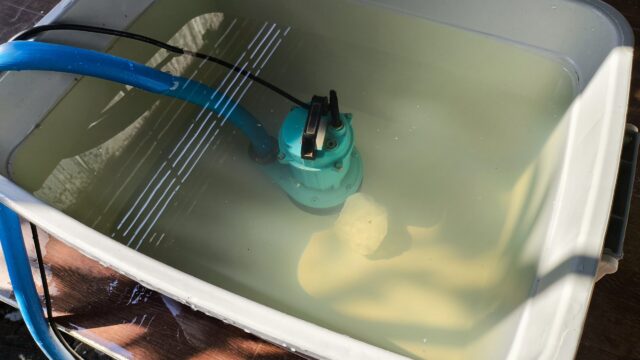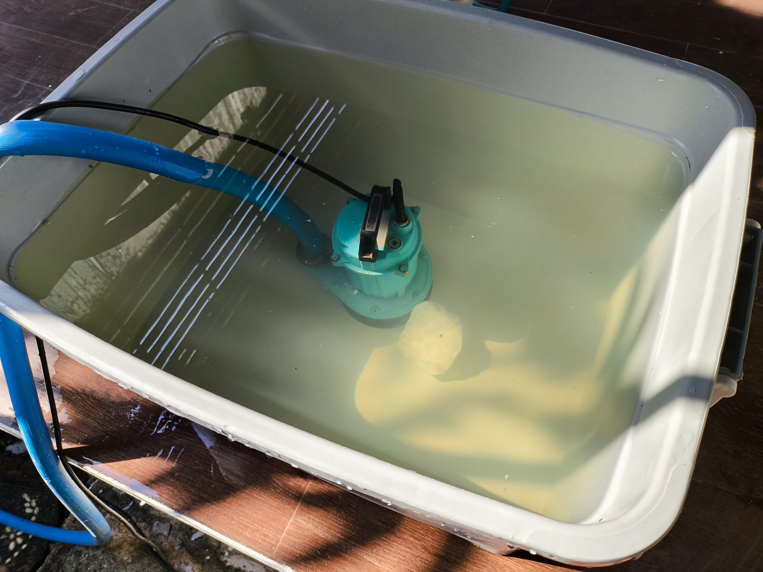 今回もミョウバンを入200gほど溶かして、水タンク内を攪拌し1日おいたらまあまあきれいな水になったよ。