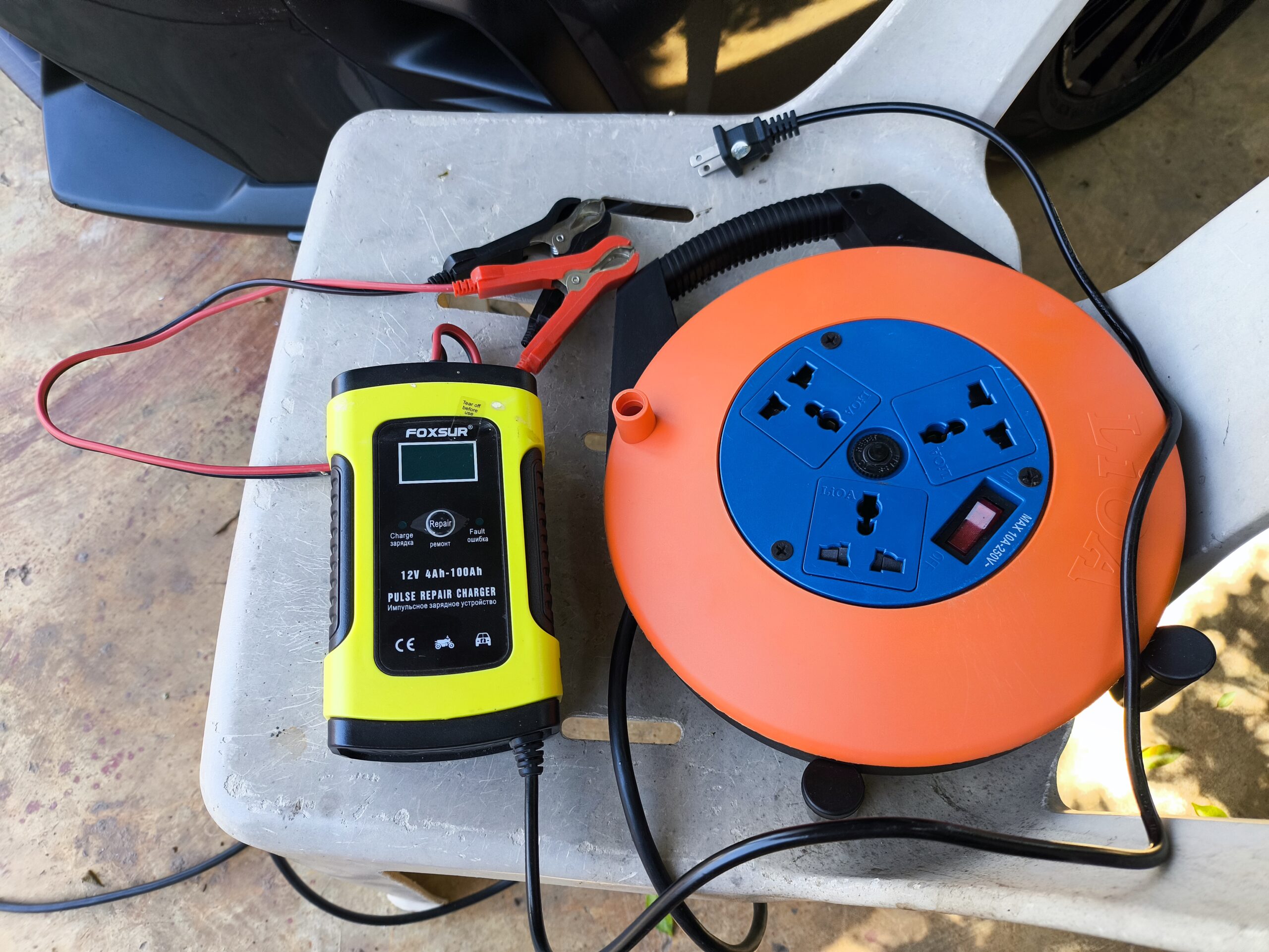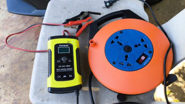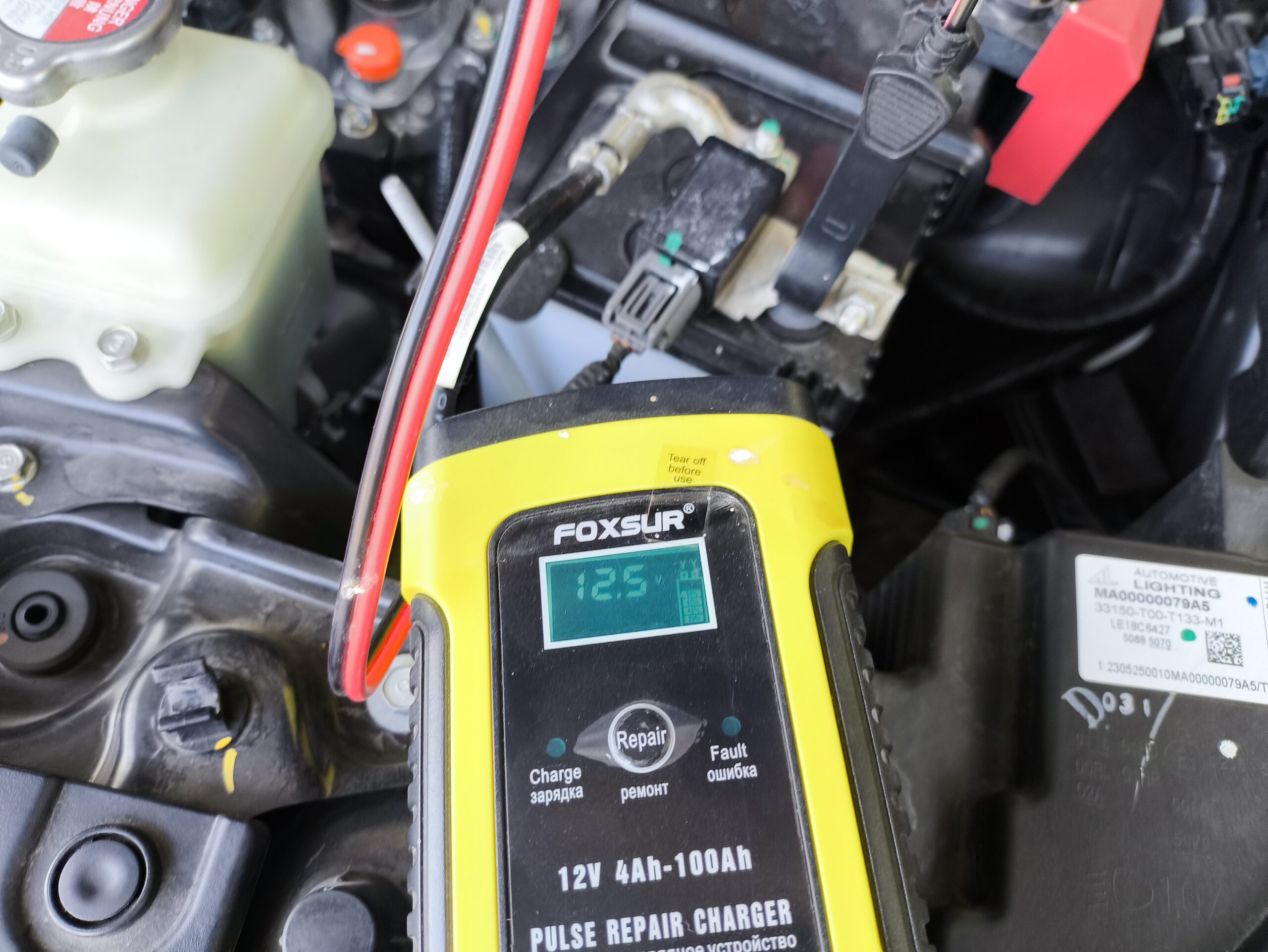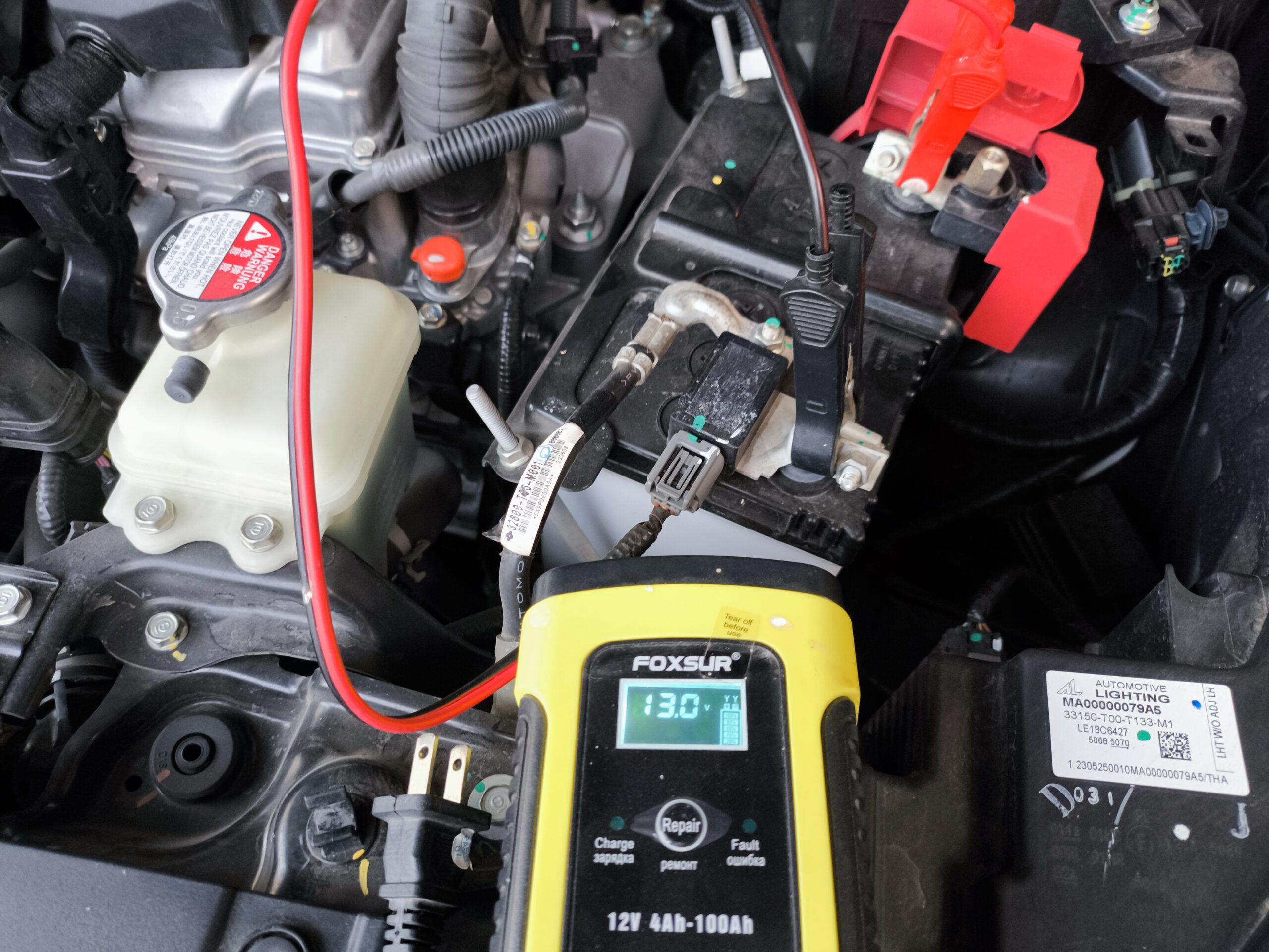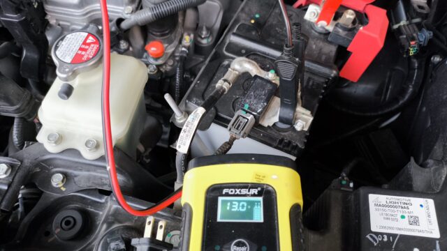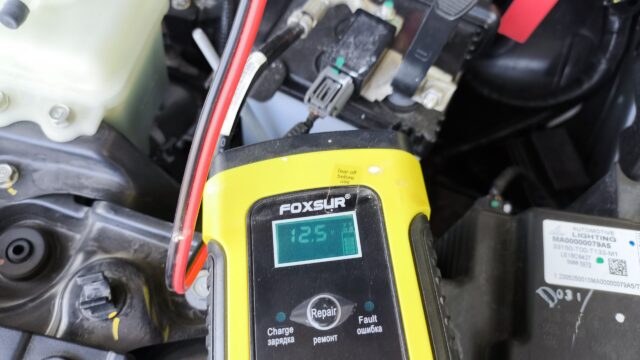 ディーラーの検査結果だとCCAも下がってきてるし、電圧も12.29Vとちょっと低いみたいなので、バッテリーを交換する前にリペア充電して様子を見る。