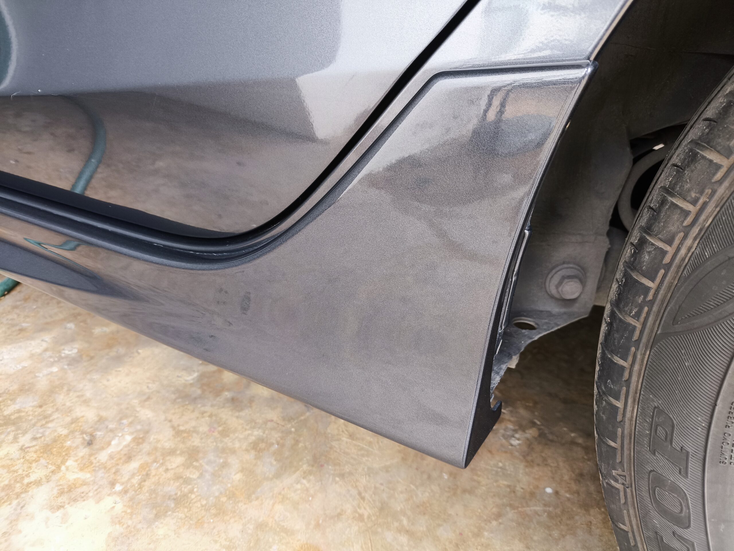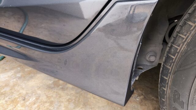 左サイドスカートの傷はこんな感じ。見た目はきれいだけれど、車体との接合部に隙間が増えた。。。