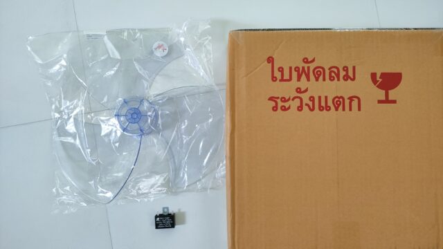 先日、不調の扇風機をチェックし部品交換が必要と分かりタイの通販でオーダーしたパーツが到着。さくっと修理します。
