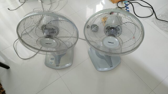 パーツ交換後は羽の回転時の嫌な振動が消え、ファン回転数も元に戻った気がする。でも同じ商品を並べて比較すると回転が少し弱いかも?まあ今までの2倍は風量が有る感じなので不都合はないと言うか、タイの扇風機は全体的に風が強いので弱めで丁度良いです。