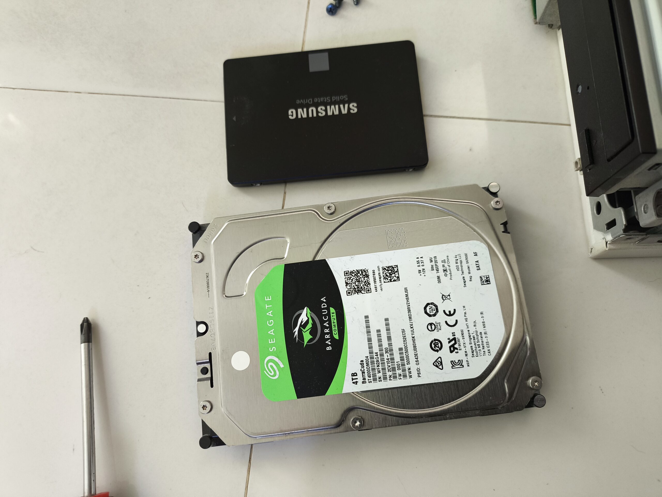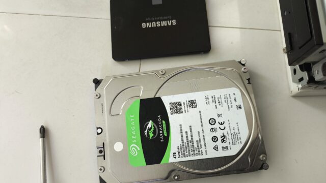 PCからOS用のSSD500GBと保存用のHDD4TBを取り出し、フォーマットする。