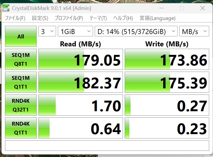 「CrystalDiskInfo」で健康状態を確認すると特に異常は出ていないので、そのままバックアップ用の記憶媒体として家族の写真とかを入れる事にする。
