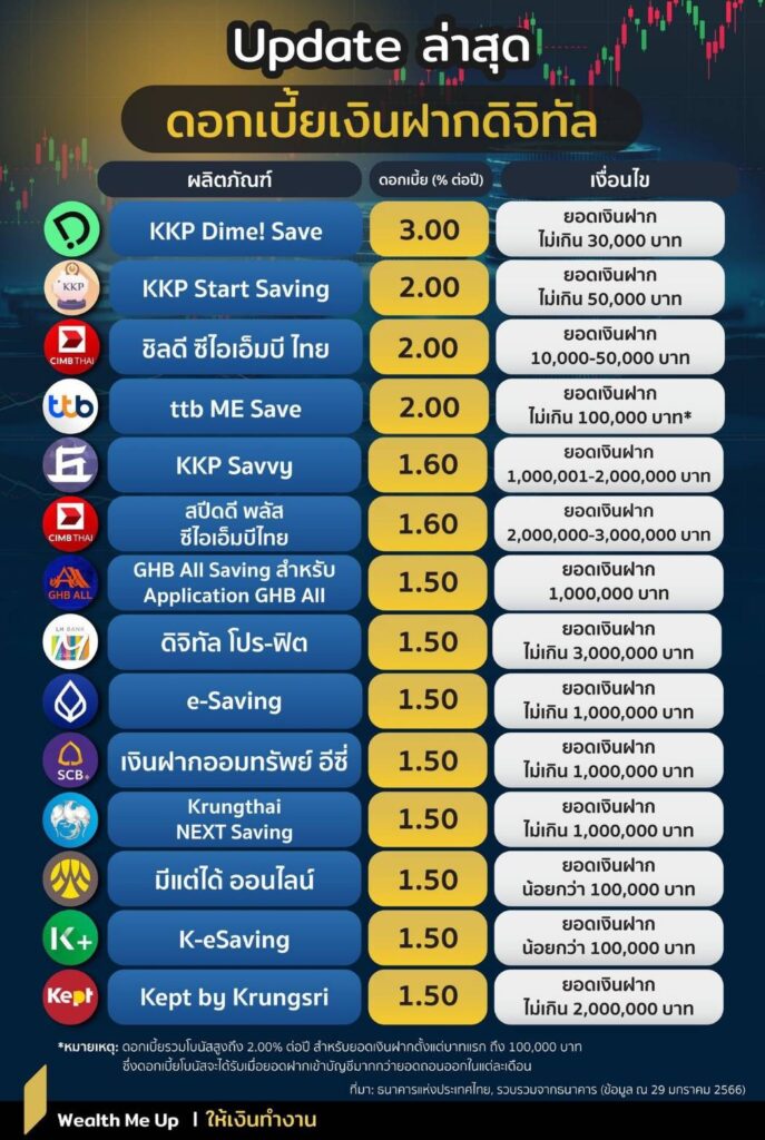 直近のタイ主要銀行の金利が出てた。金利が上昇しているので基本1.5%は金利有るみたいです。