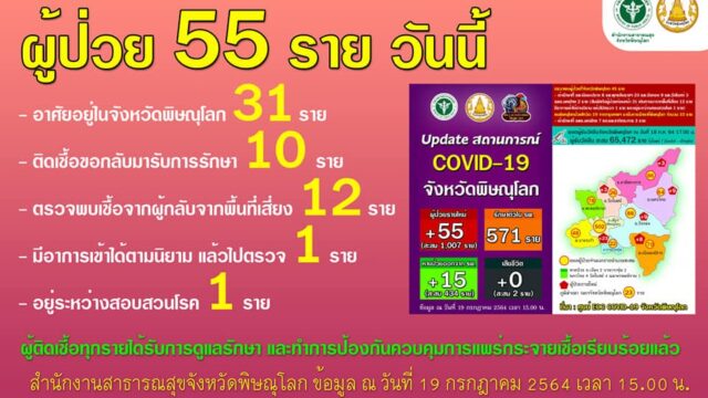 ちなピサヌロークは新規55人でピサヌローク在住:31人でございます。