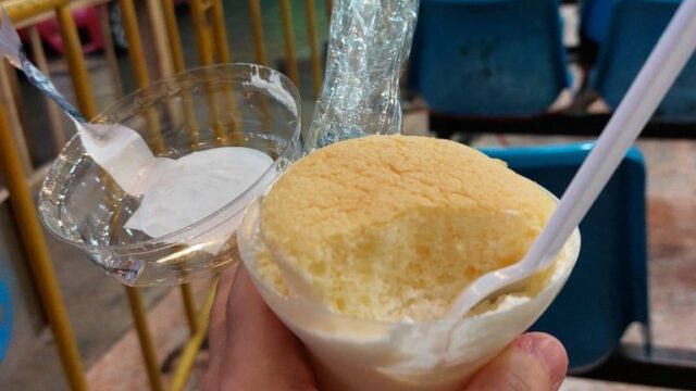 バスではご飯が出ないので、適当に菓子パン等を食べて空腹を凌ぐ。