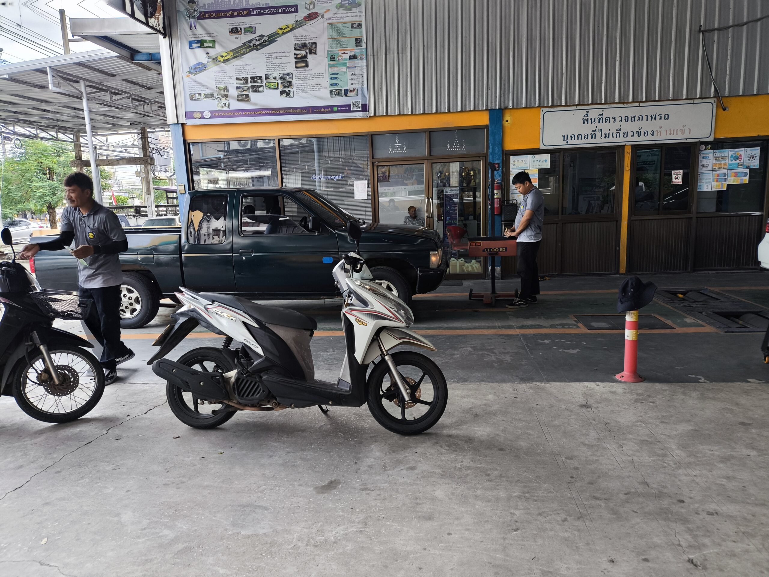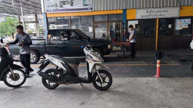CLICK君は10月25日で車検切れ状態なので、事故と警察に気を付けて安全運転でピサヌローク陸運局横の車検場に到着。
