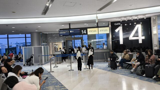 クレジットカード付帯サービスで預けた宅配荷物を受け取り、荷物の最終調整を行いZIPAIRのカウンターに向かう。