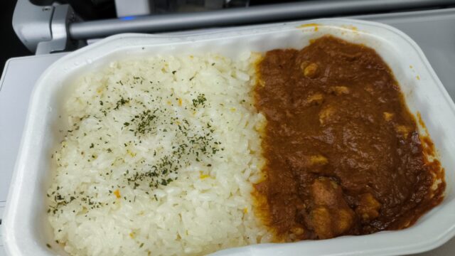 俺氏は食事込みのセットなので食事(バターチキンカレー)が来たけど、周りに食事をする人が居ないので、皆さん預け荷物だけ購入した感じかな?