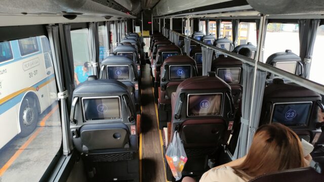 バスは定刻11時近くに出発。ナコンチャイエアーのウッタラディット路線のシートは全て1列シートで隣を気にしなくて良いから個人的に気に入ってます。