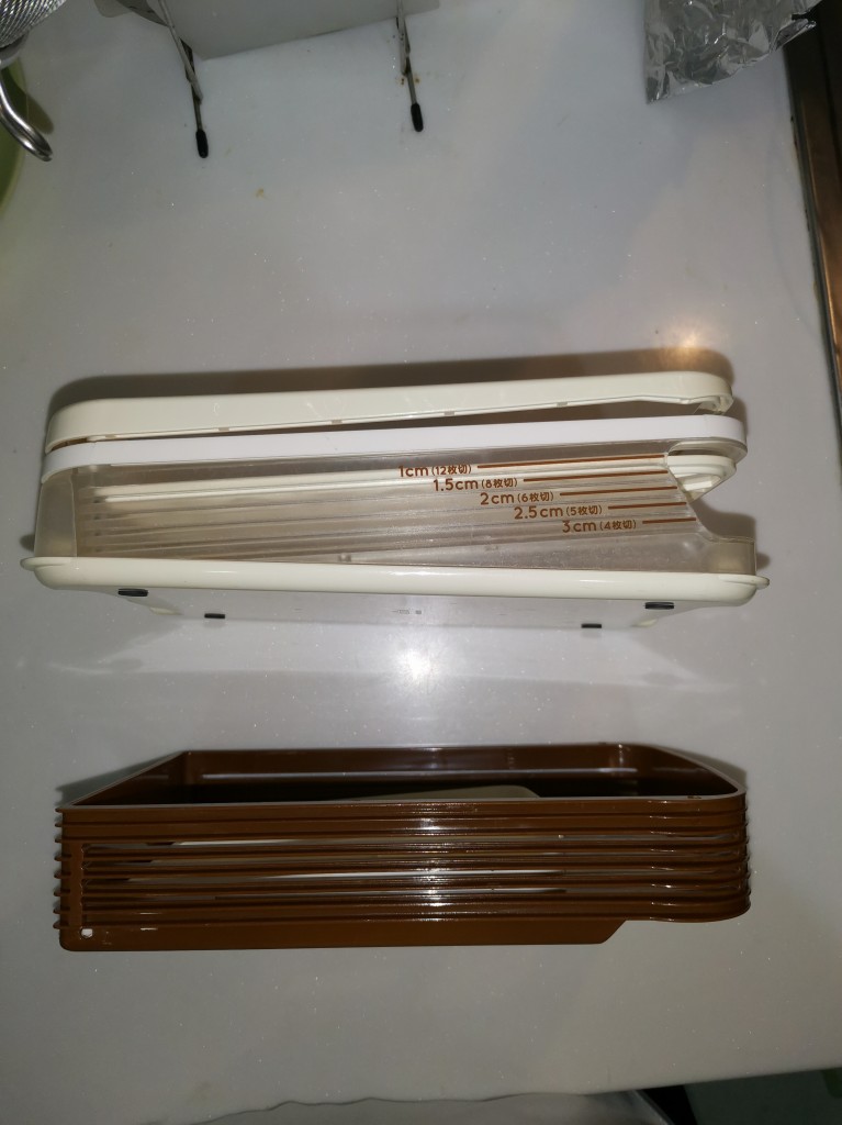 特に問題なく切れるね。でもスリット部分の剛性が低いのでパン切り包丁に押されて変形しちゃうから数ミリの範囲内で誤差は出ます。
