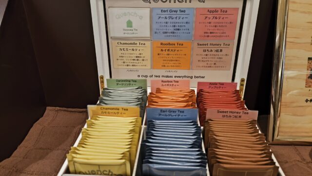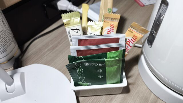 部屋に最小限のアメニティは有りますが、必要であればロビーに置かれているアメニティや紅茶を持って行く事をお勧めします。