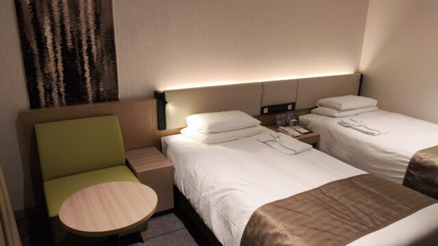 部屋はスペーリアツインで1泊2人で4950円でした。こんな駅チカで高評価のホテルがビジネスホテル以下の価格で泊まれてメチャお得でした。