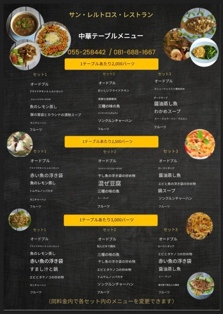タイ中華料理でおおよそ1テーブル8人で2000バーツから作れるとの事。