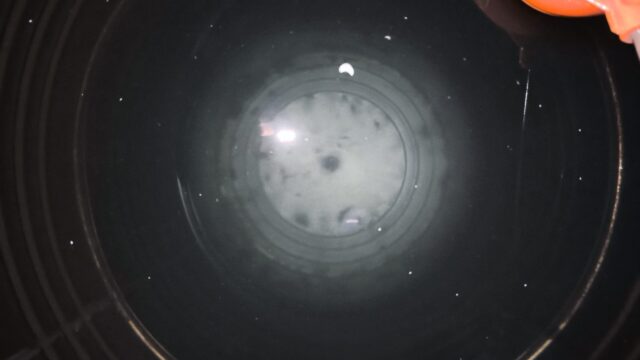 あと上水から流れてくる泥水をミョウバン使って泥を沈殿させて使っているけど、水タンクの底に泥が堆積していくので、水ホースと長い塩ビパイプを使ってタンク底の泥掃除を実施。