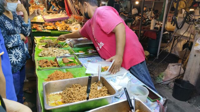 駅前市場に到着したのが19時過ぎなので嫁氏のお気に入りのサラダ屋台は売り切れで別の店で購入。