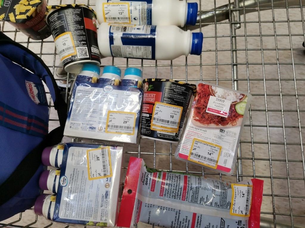 で、今日もお買い物です。今日はロータスで400バーツ以上買うと60バーツ割引なので、在庫の減ったロングライフ牛乳と生卵をメインに購入予定なのです。