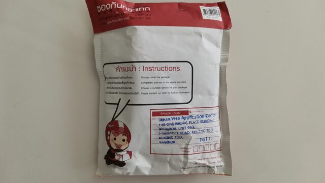 先週の木曜日にピサヌローク郵便局で申請した「日本人配偶者の短期滞在ビザ」ですが本日19日AMに郵便で返送されてきた。