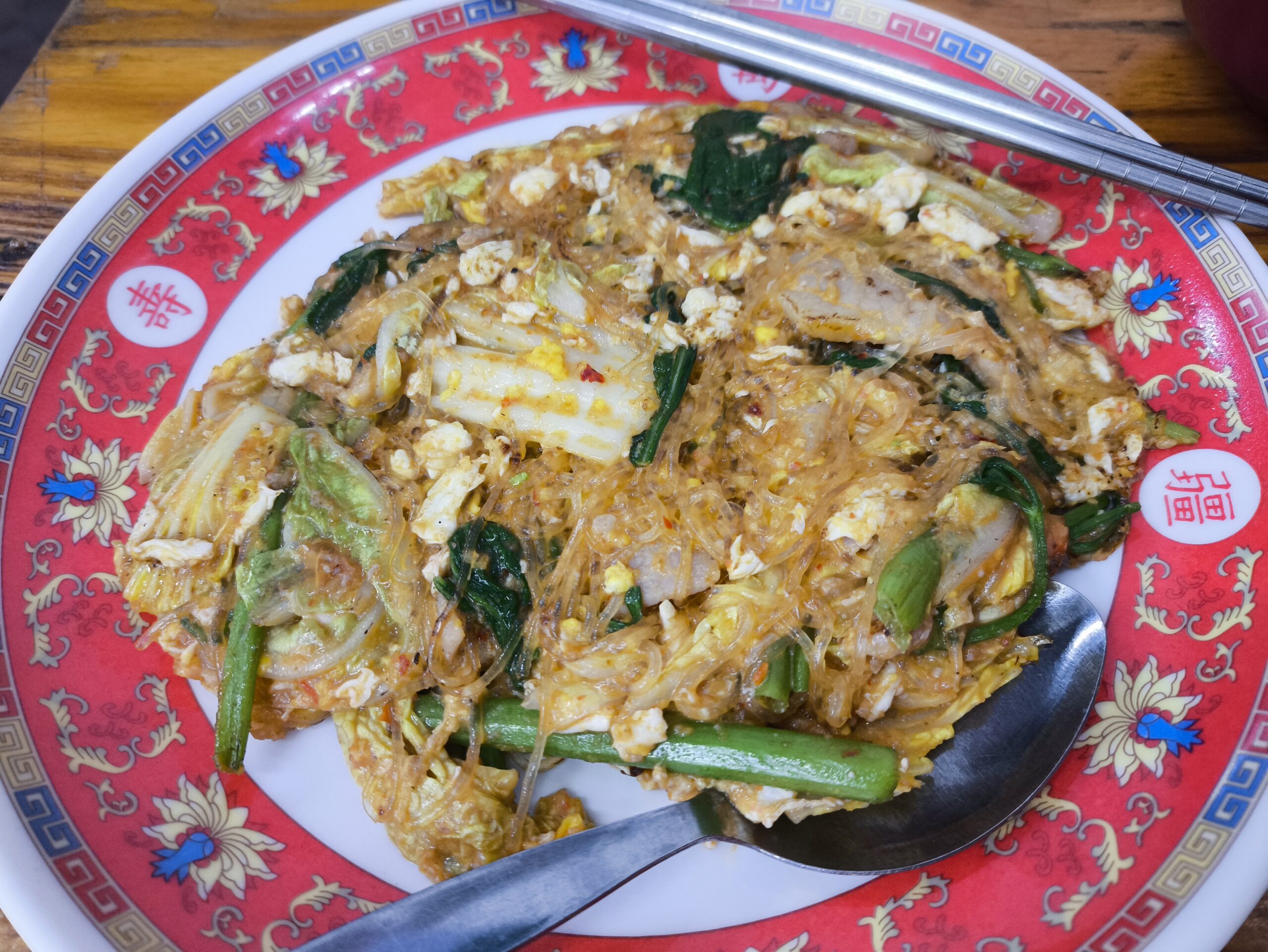 チェンマイで食べたお店の方が野菜の炒め方が上手だったが値段も高かったので、この店はこれで良し。