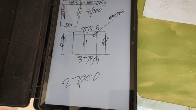 作業終了後に義母は外リビング部分にもガラス扉(掃き出し窓)を付けたいとの事で見積もり取ってた。