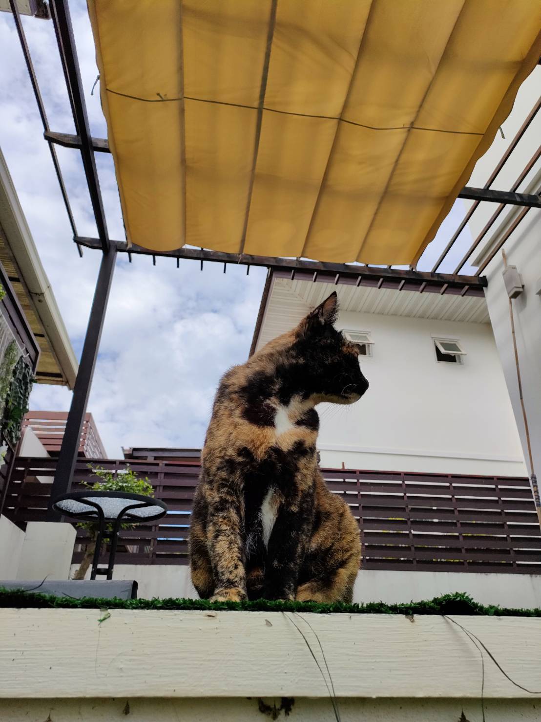 先日バーコラに取り付けたサンシェード(オーニング)だけど、雨が降ると布に水が大量に溜まる状態で非常に不愉快。