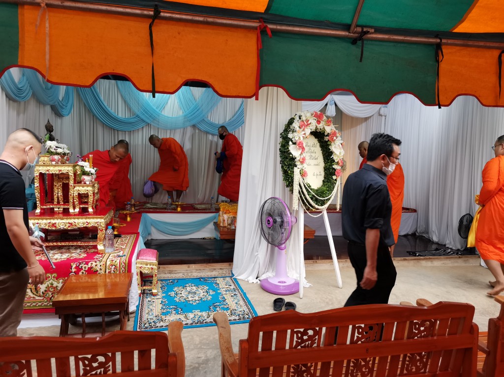 朝7時からのタンブンイベントは8時半に終了し、次のイベント(ご遺体を自宅からお寺に移動)は13時からになります。