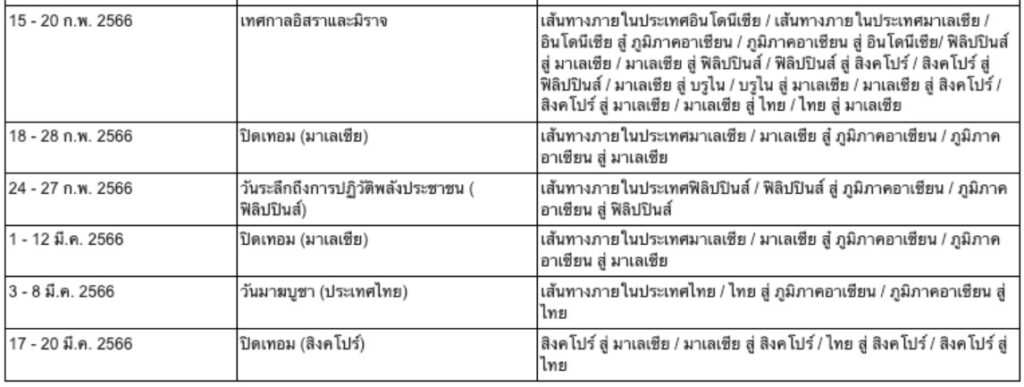 - タイおよびASEANの航空券 (利用不可日が有り)